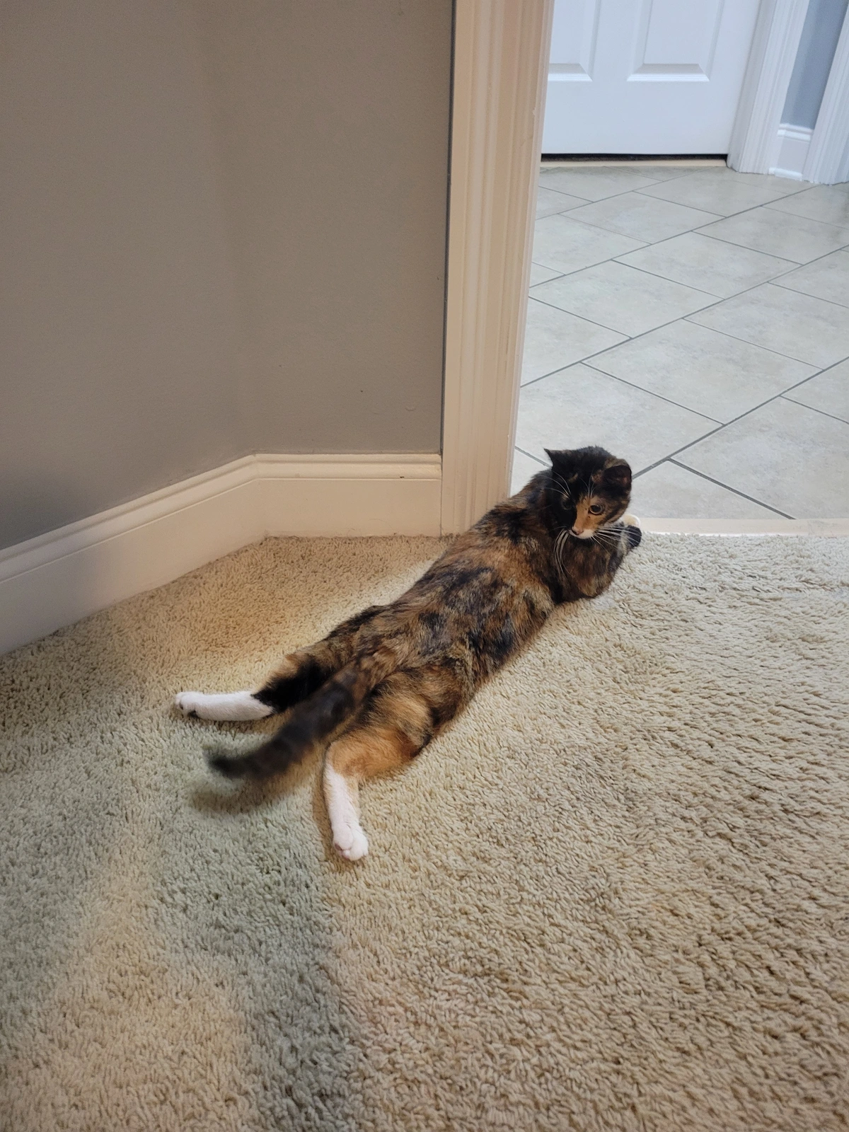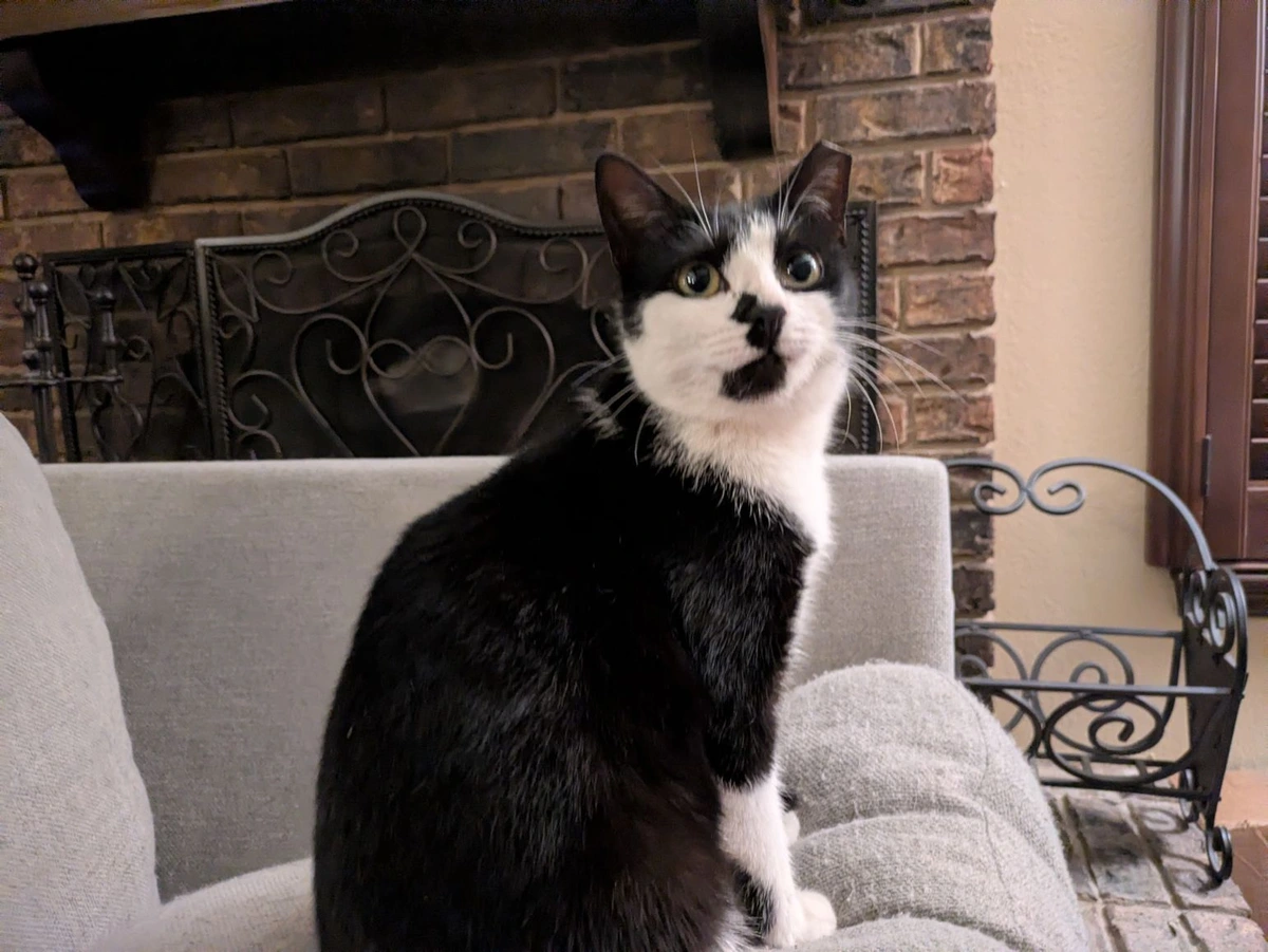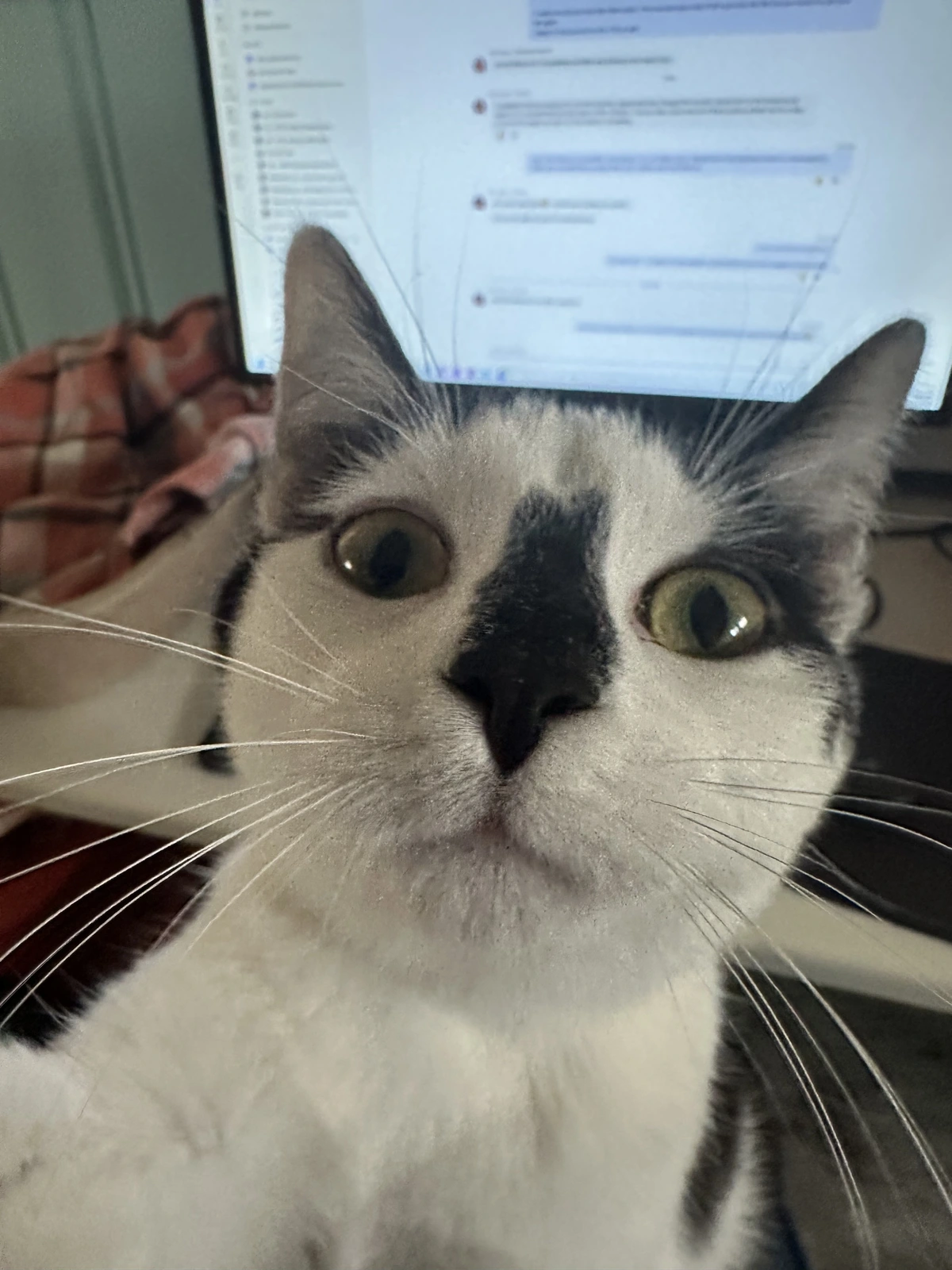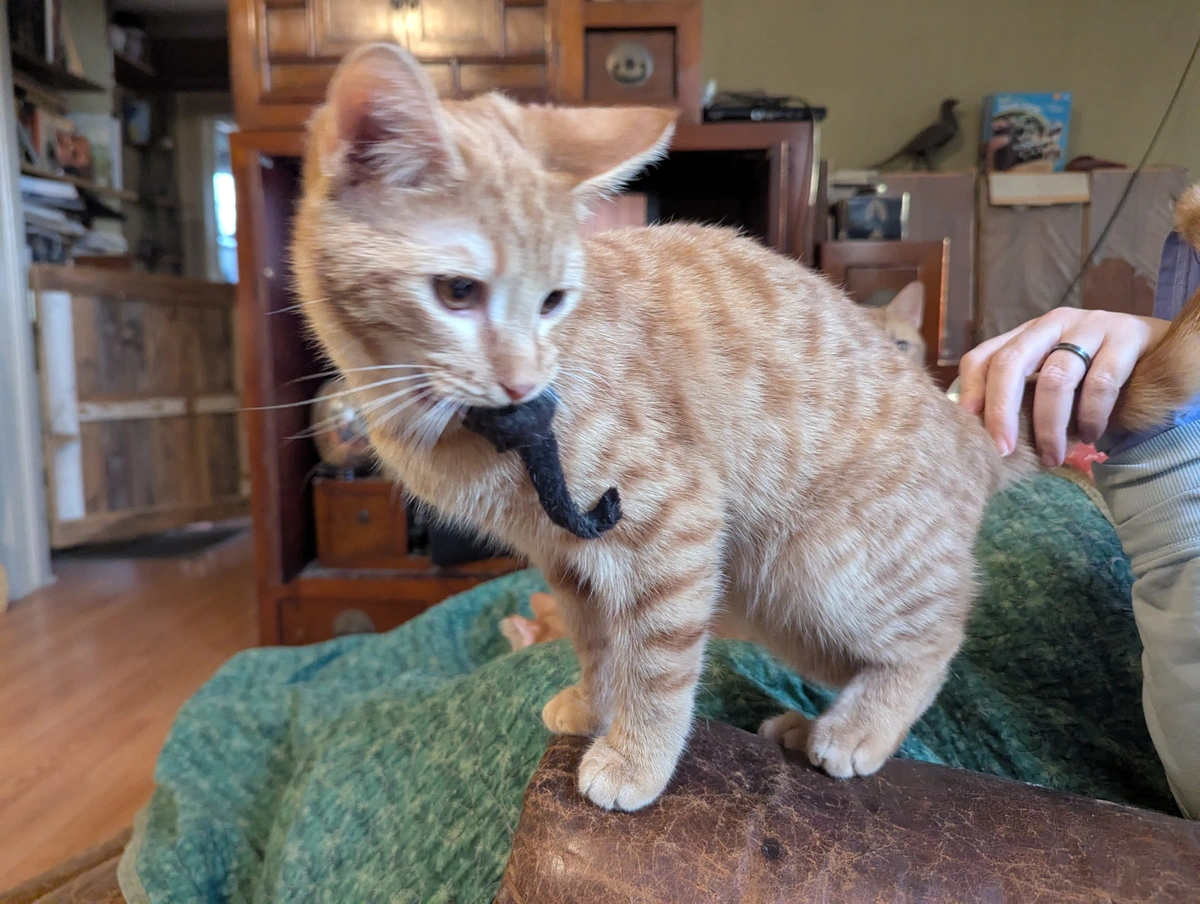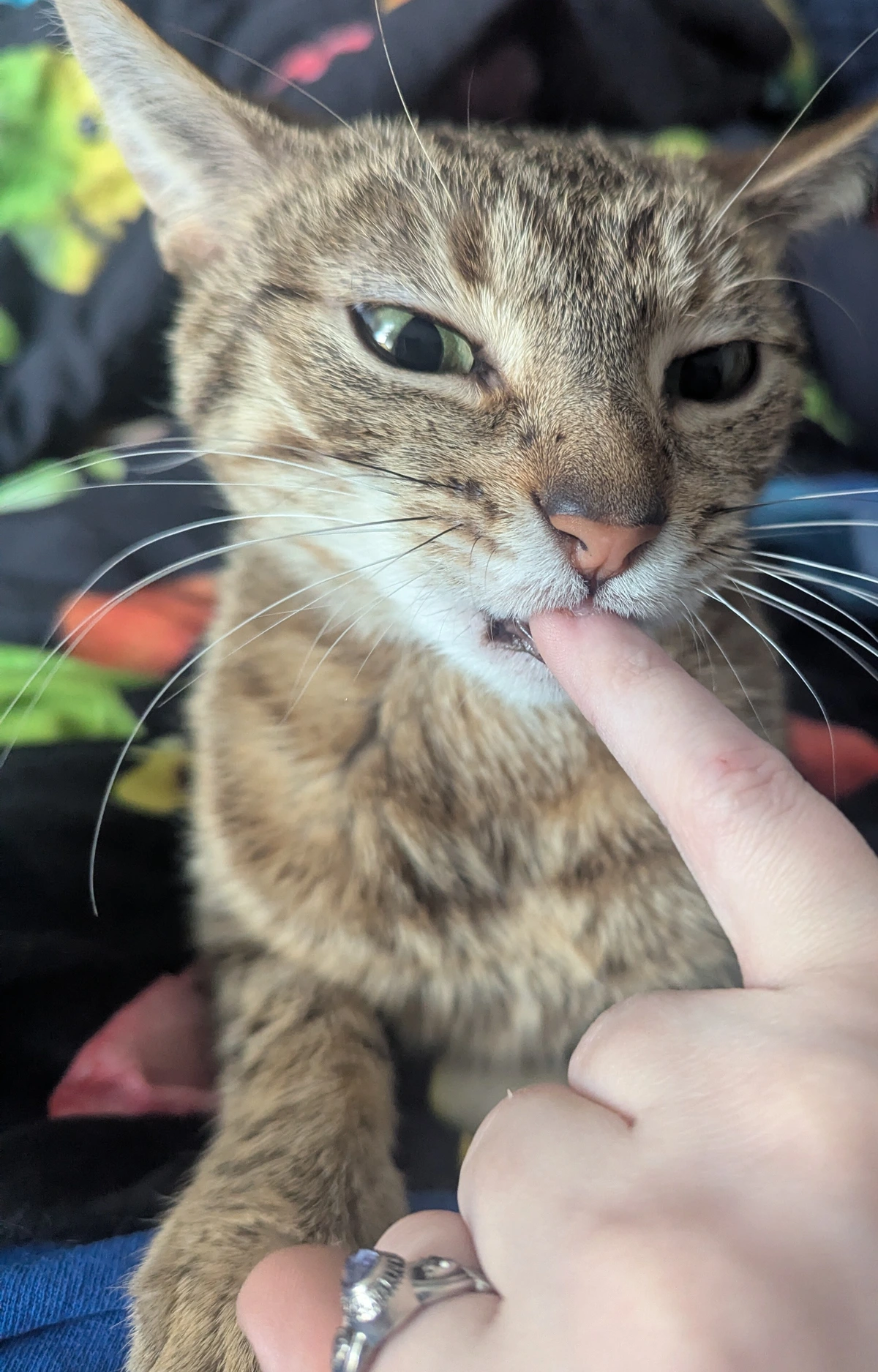 Cece showed up as a cat that had been through multiple fosters. The idea was he would come here and weโd pair him up with another cat that was never getting better and not being adoptable. The two of them could be partners as barn cats. Many months later he is completely domesticated and not going anywhere. He is now very vocal about making sure he gets his share of kitchen scraps when Iโm cooking. He is very partial to raw chicken and pork but will not turn down some cheddar.