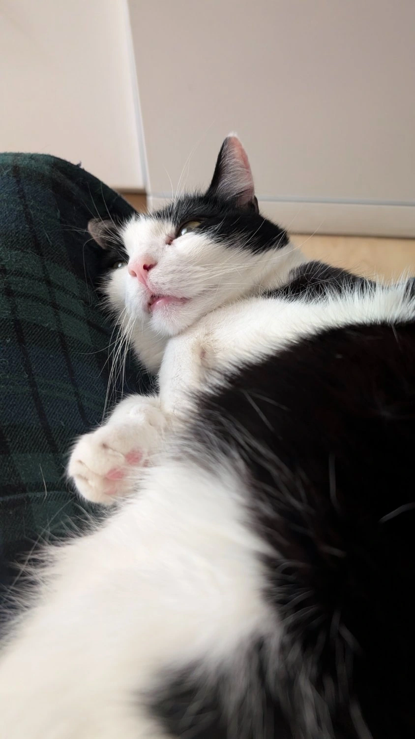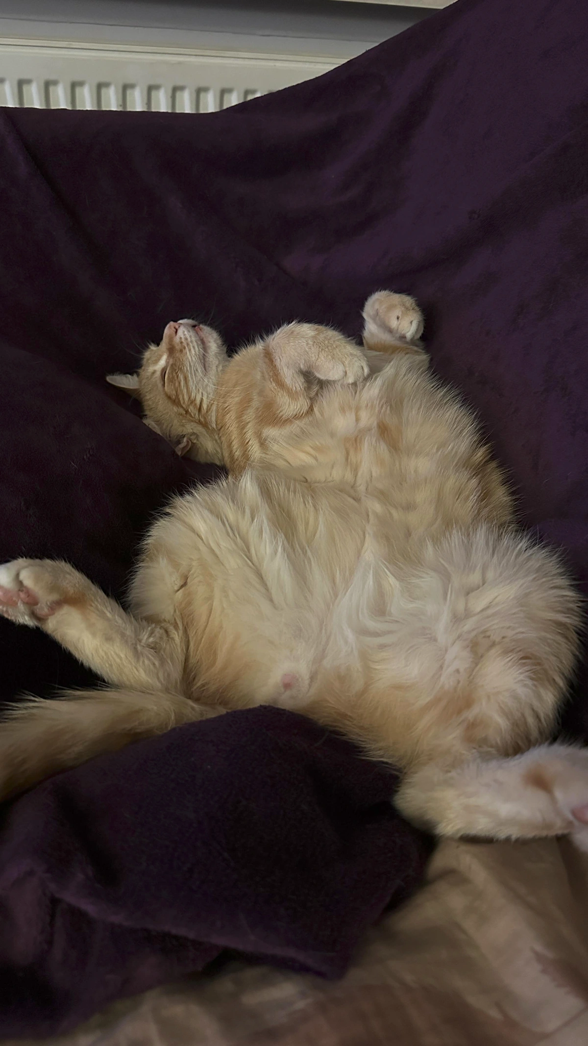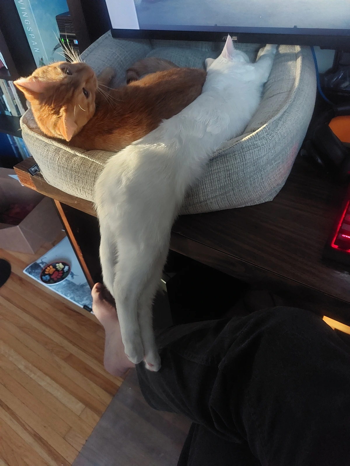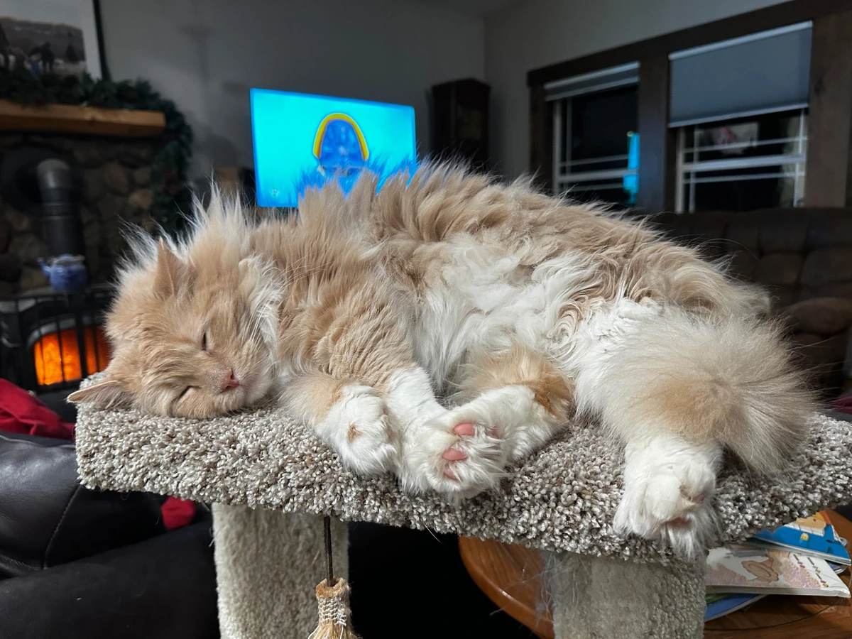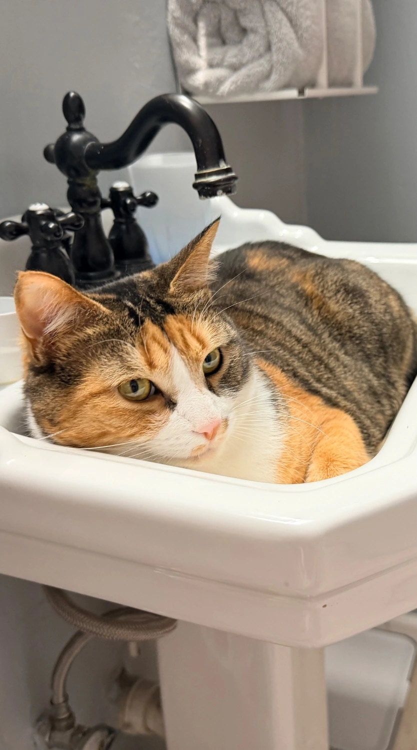 Cece showed up as a cat that had been through multiple fosters. The idea was he would come here and weโd pair him up with another cat that was never getting better and not being adoptable. The two of them could be partners as barn cats. Many months later he is completely domesticated and not going anywhere. He is now very vocal about making sure he gets his share of kitchen scraps when Iโm cooking. He is very partial to raw chicken and pork but will not turn down some cheddar.