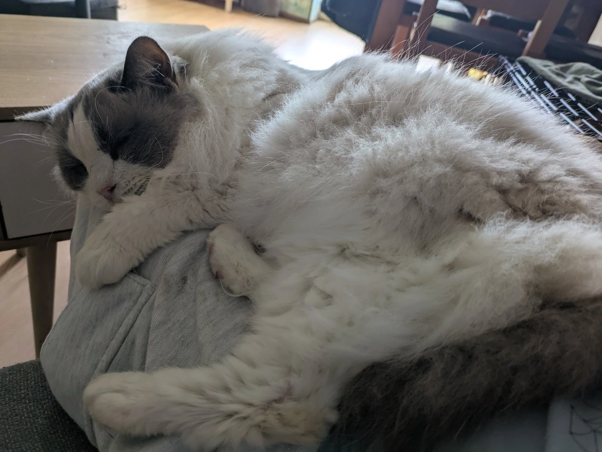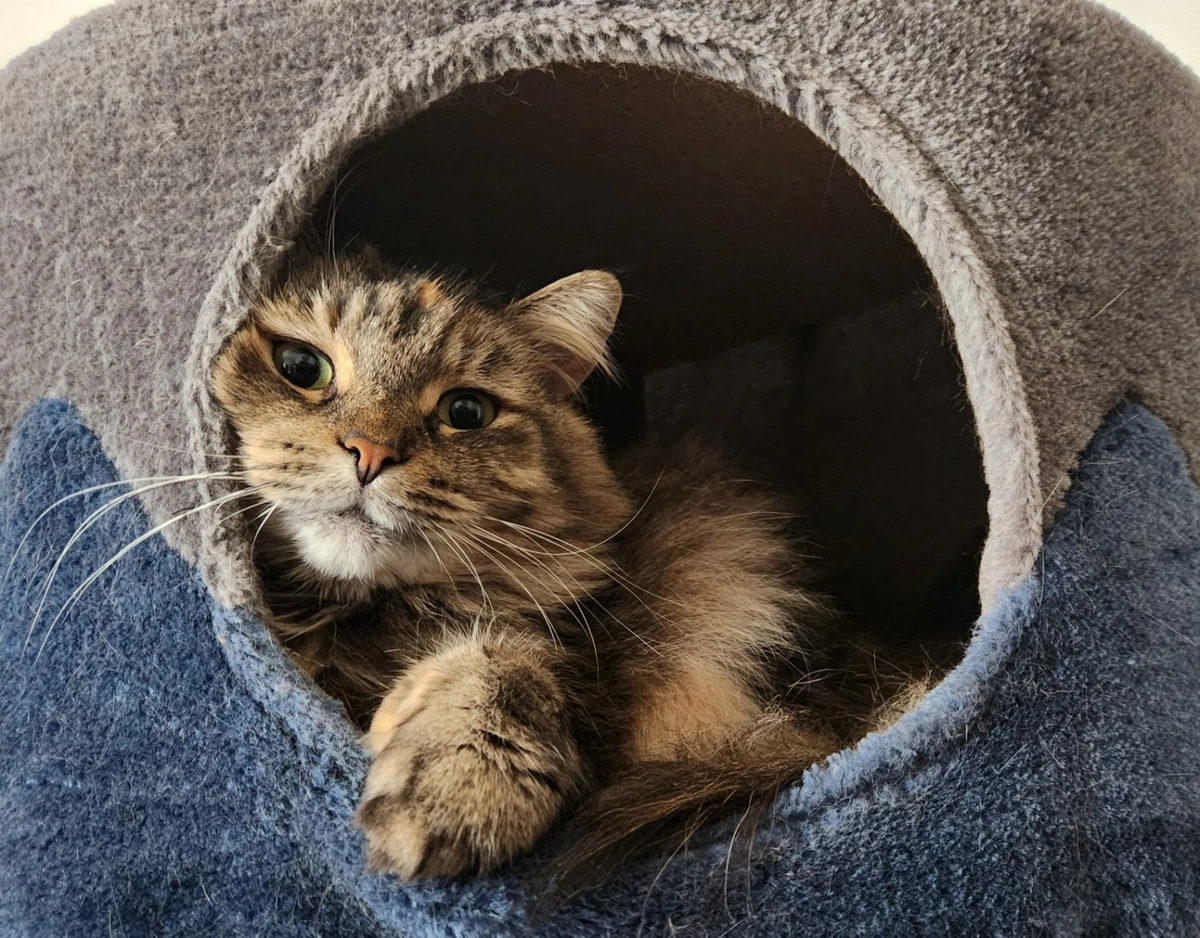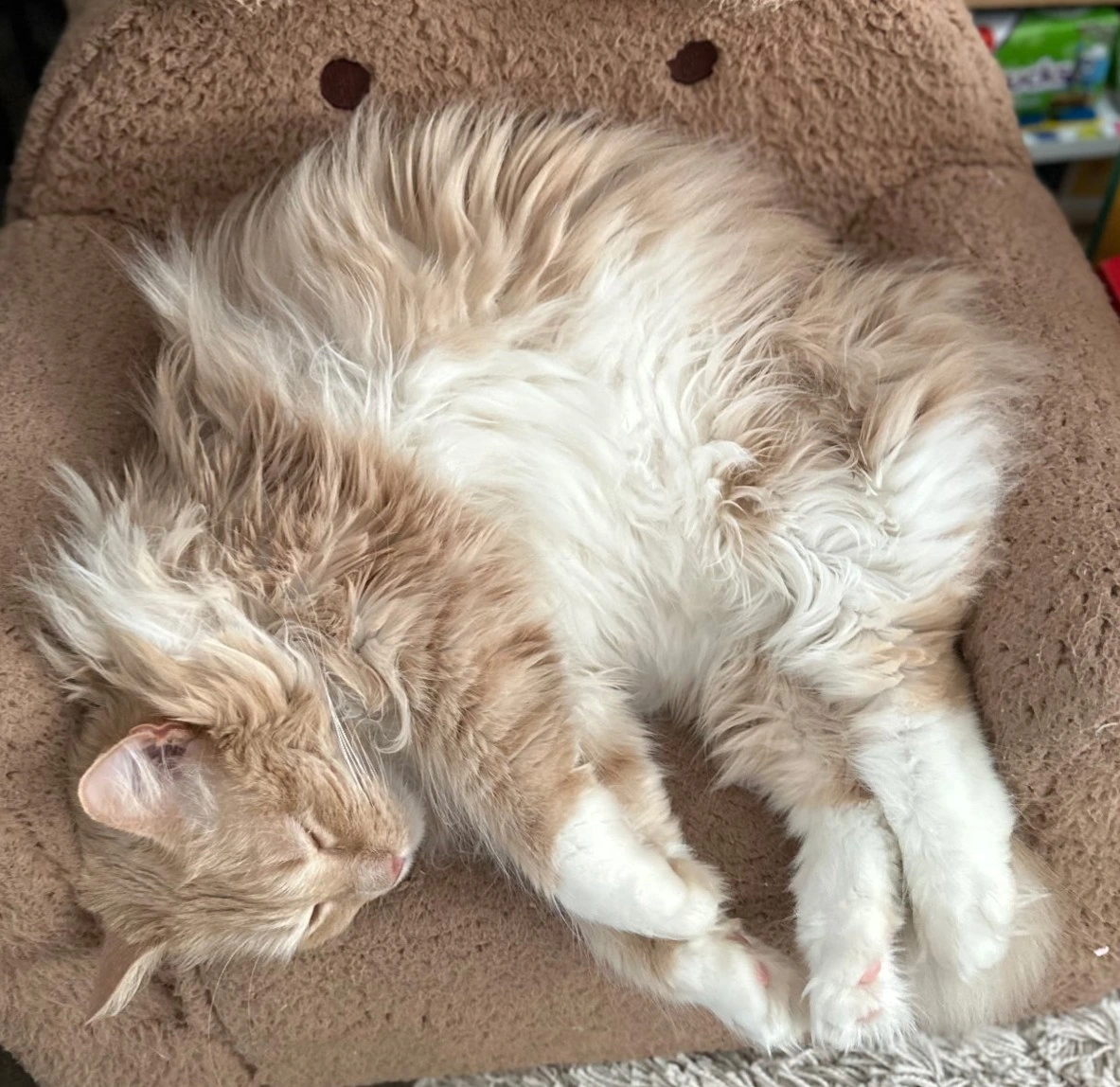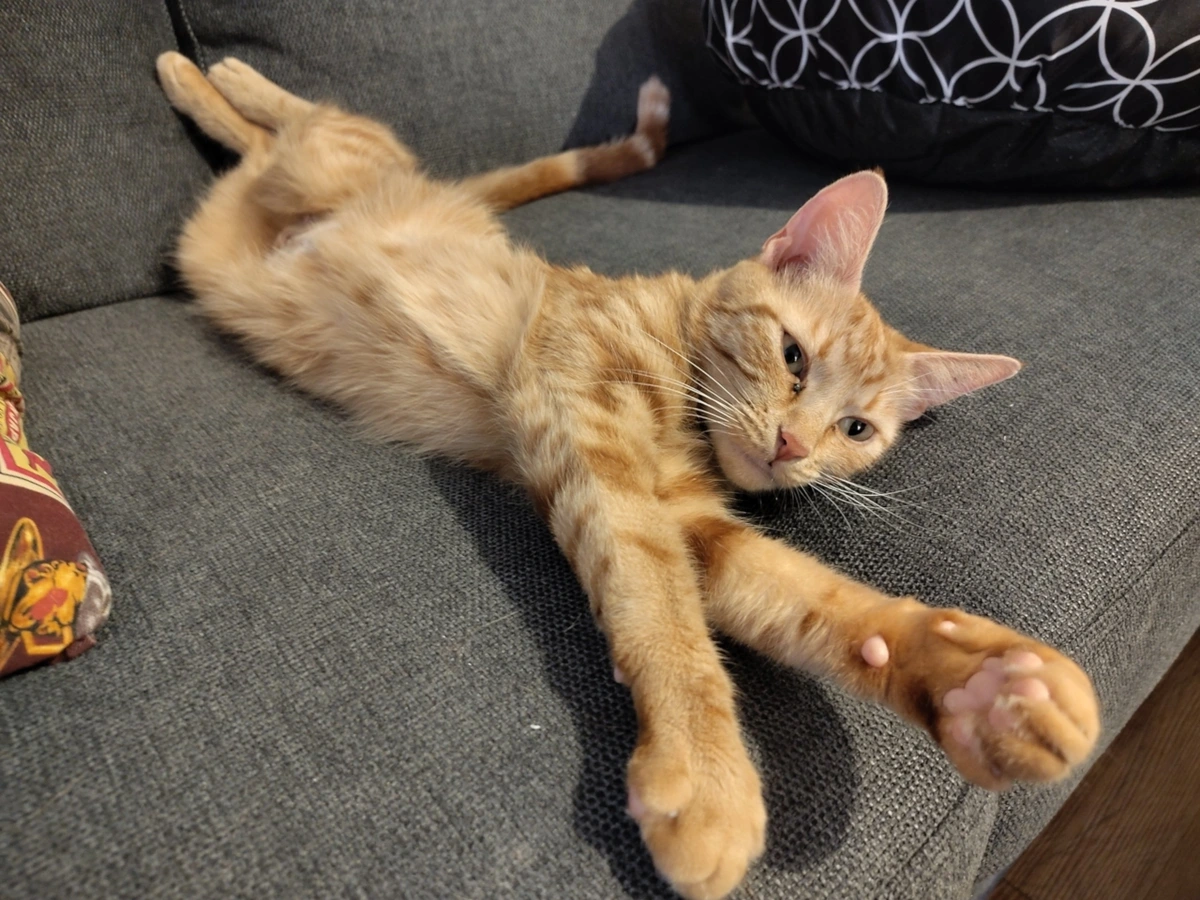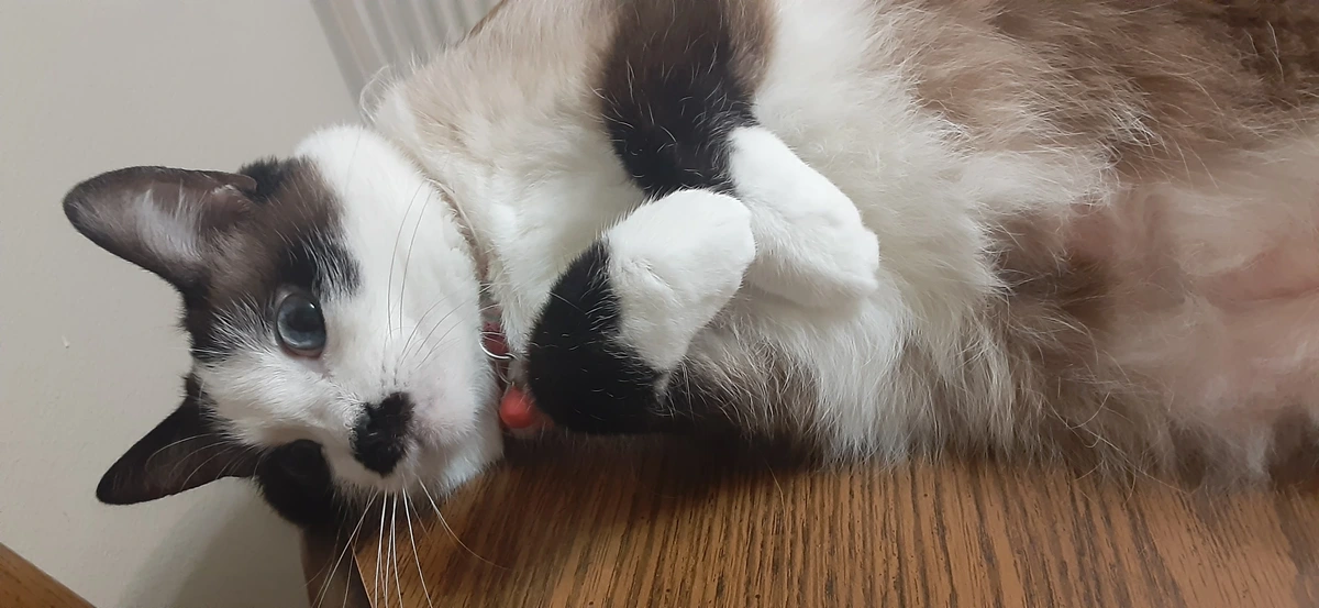 Cece showed up as a cat that had been through multiple fosters. The idea was he would come here and weโd pair him up with another cat that was never getting better and not being adoptable. The two of them could be partners as barn cats. Many months later he is completely domesticated and not going anywhere. He is now very vocal about making sure he gets his share of kitchen scraps when Iโm cooking. He is very partial to raw chicken and pork but will not turn down some cheddar.
