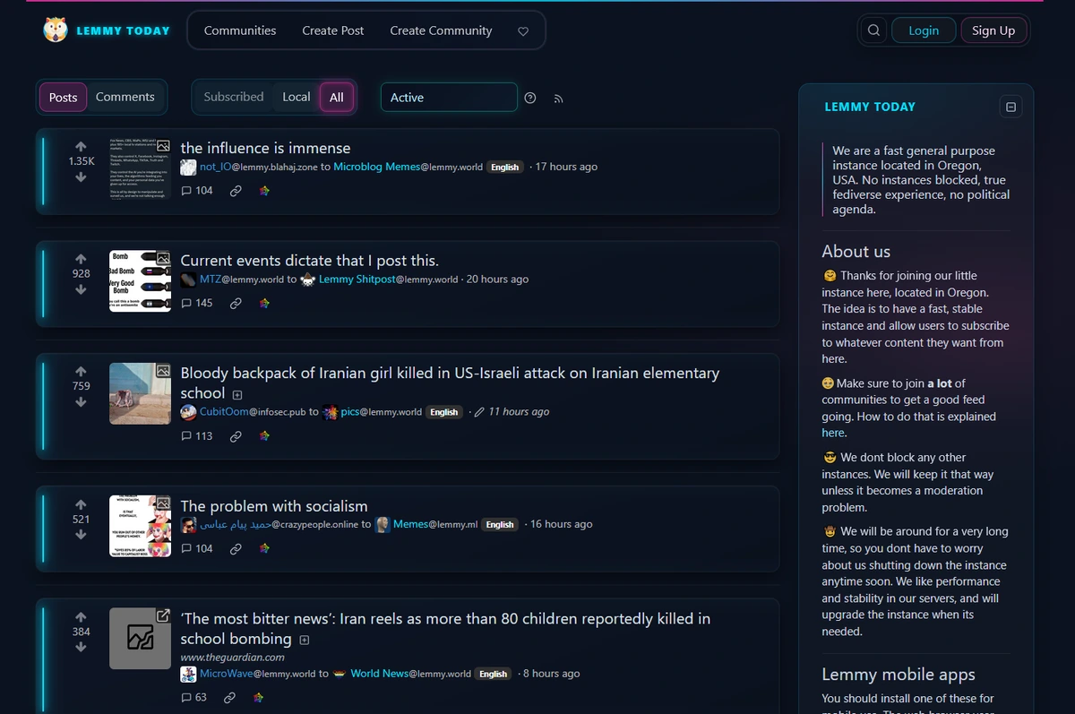 evil.social down for weeksThere's a Sharkey-like (Catodon) instance called evil.social. A few months ago, I created an alternate account there so I could have an alternative to calckey.world (another Sharkey-like instance) for situations where Calckey would be experiencing downtime (with Calckey itself having been an alternative for my earlier Friendica account, after Friendica began experiencing frequent downtime occurrences; eventually I ended up staying on Calckey permanently).At the time, their ActivityPub federation capabilities didn't seem to work properly, I couldn't fetch posts/comments from other instances as well as Calckey.world can. Nonetheless, I still kept the evil.social account as an alternative.Now, it's been a few weeks since evil.social began returning 502 (Bad Gateway).Anybody knows what's happening with said instance? Is it temporary downtime or the instance is likely gone forever? If the latter is the case, what alternatives to Calckey.world, other than Evil.social, should I be aware of, as someone who's used both to personal micro-blogging as well as interacting with posts and comments from threadiverse, and someone who's used to write lengthy texts (so max char length matters to me)?@fediverse@lemmy.world @fediverse@lemmy.ml
