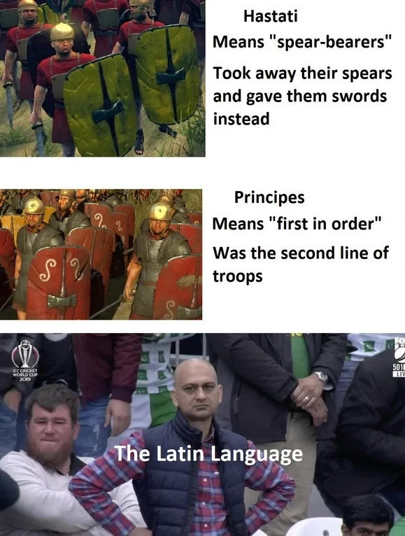 Language is a funny thing - at least we can fall back on the Triarii!