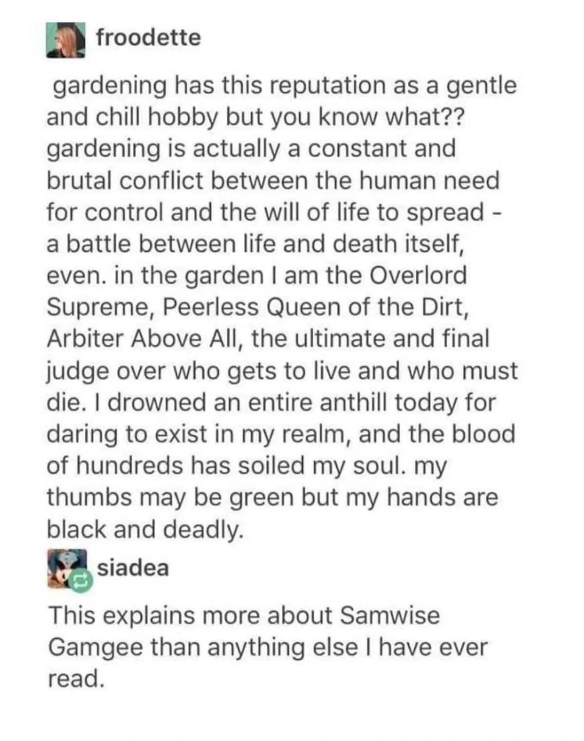 My mother said nothing about the dragon, but pointed out that one could not say ‘a green great dragon’, but had to say ‘a great green dragon’. I wondered why, and still do.