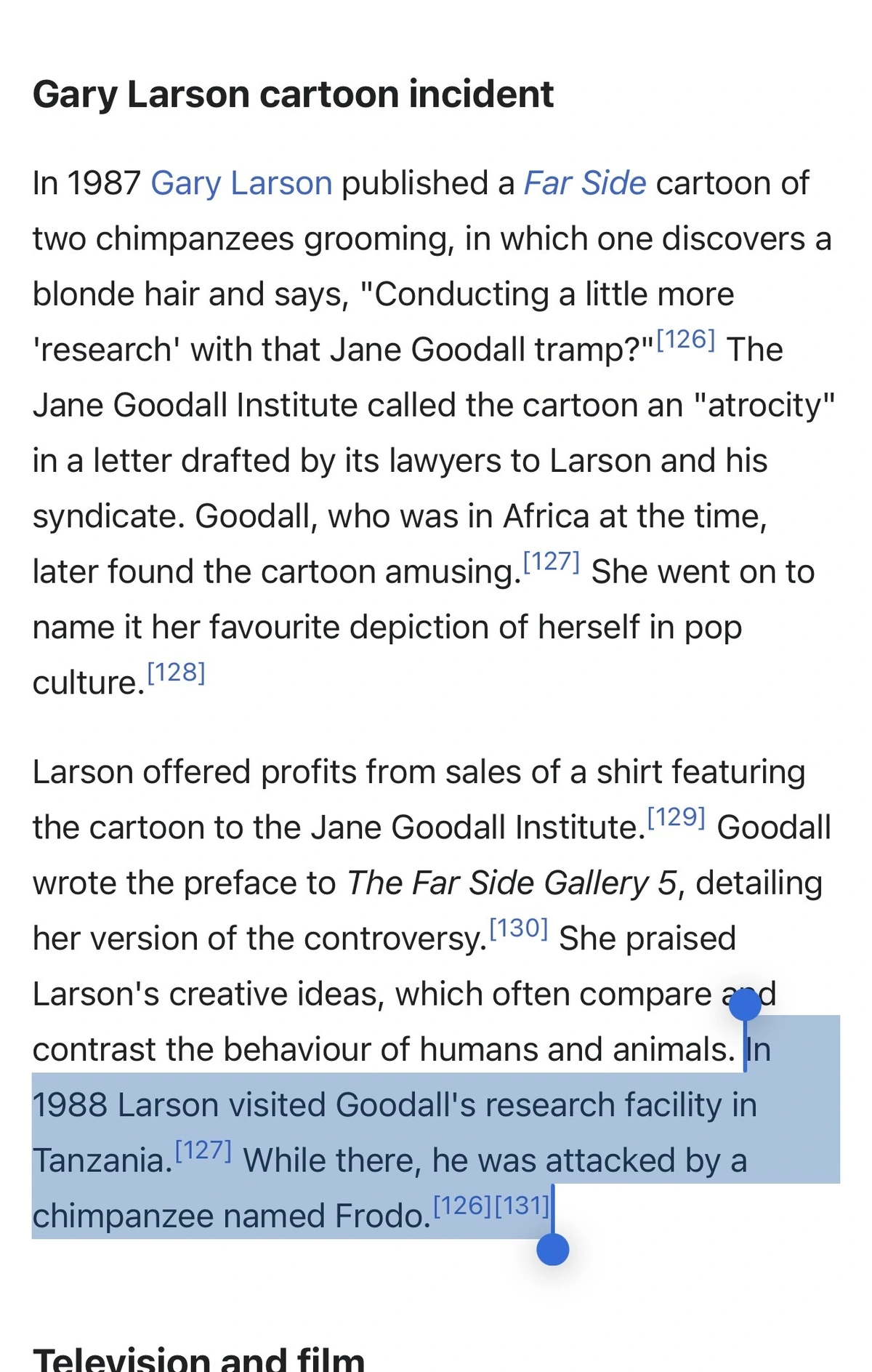 https://en.wikipedia.org/wiki/Jane_Goodall and https://web.archive.org/web/20111227200328/http://ngm.nationalgeographic.com/ngm/0304/feature4/online_extra2.html