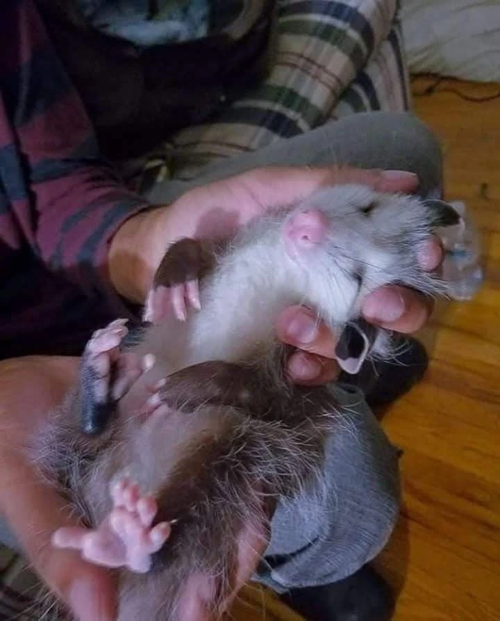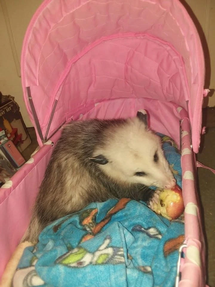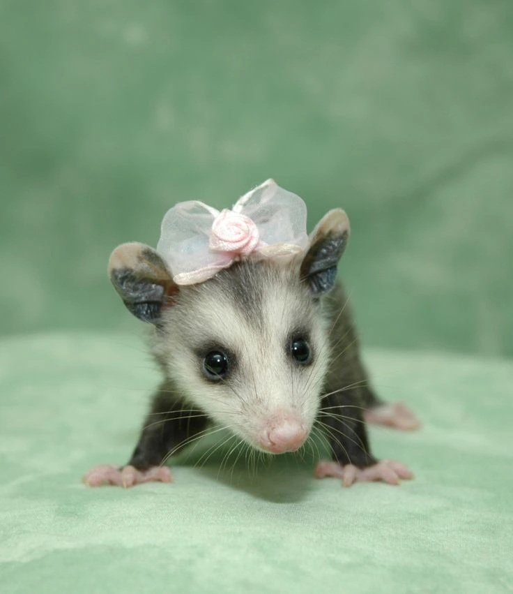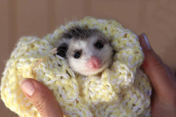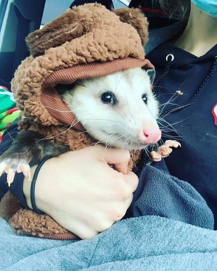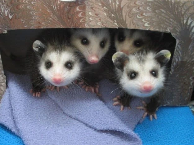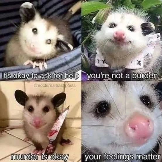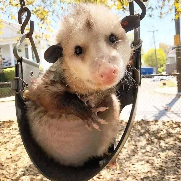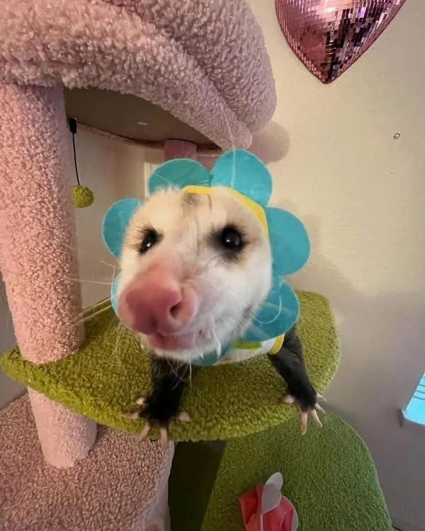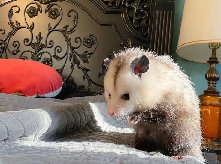 TranscriptionA 4-panel picture of an opossum. Panels 1, 3 and 4 have the close-up of the opossum’s face. Panel 2 has a picture of the possum yawning with a mouth wide open.