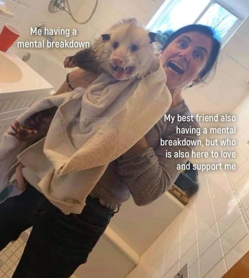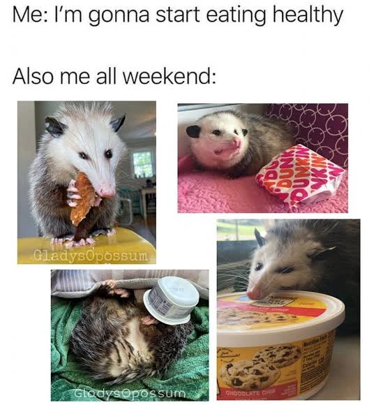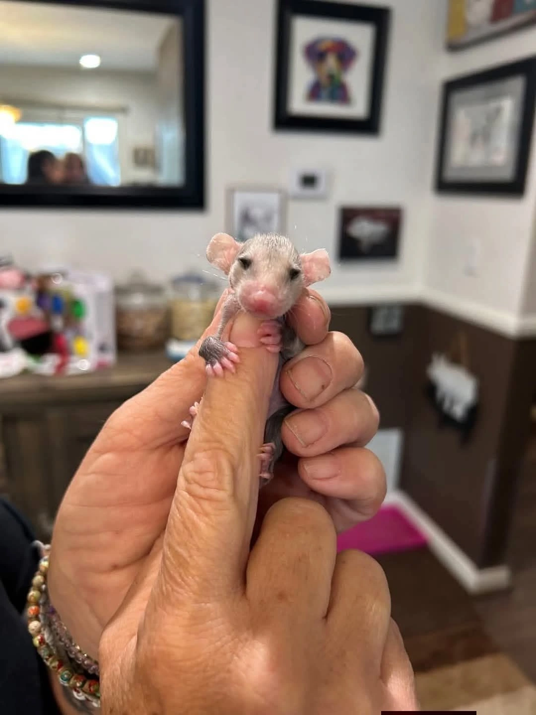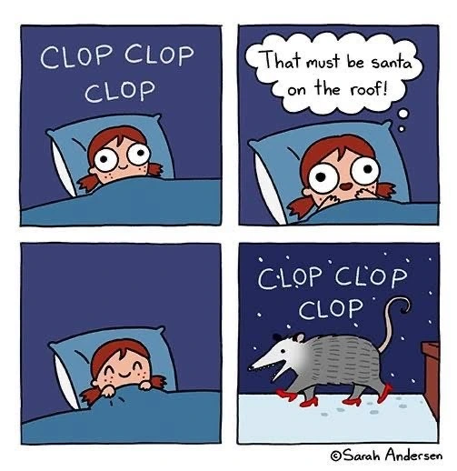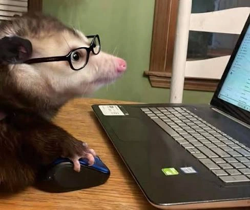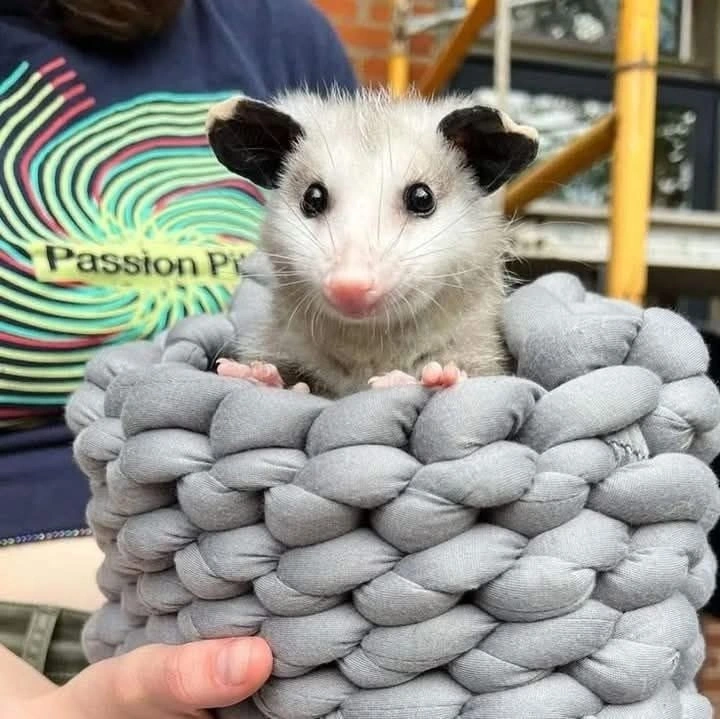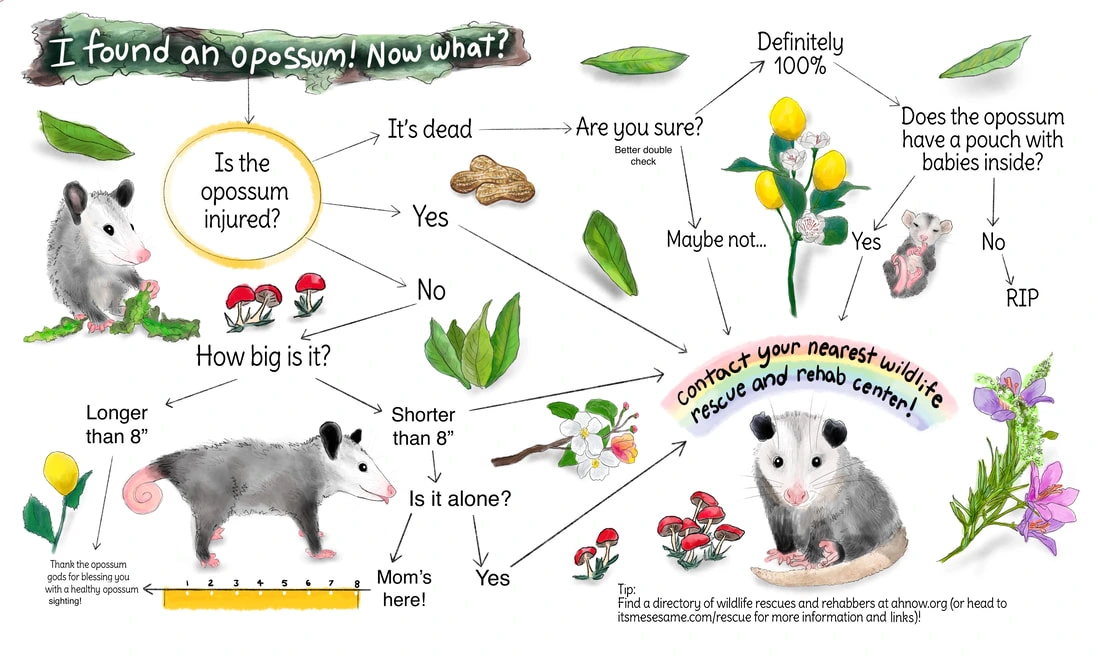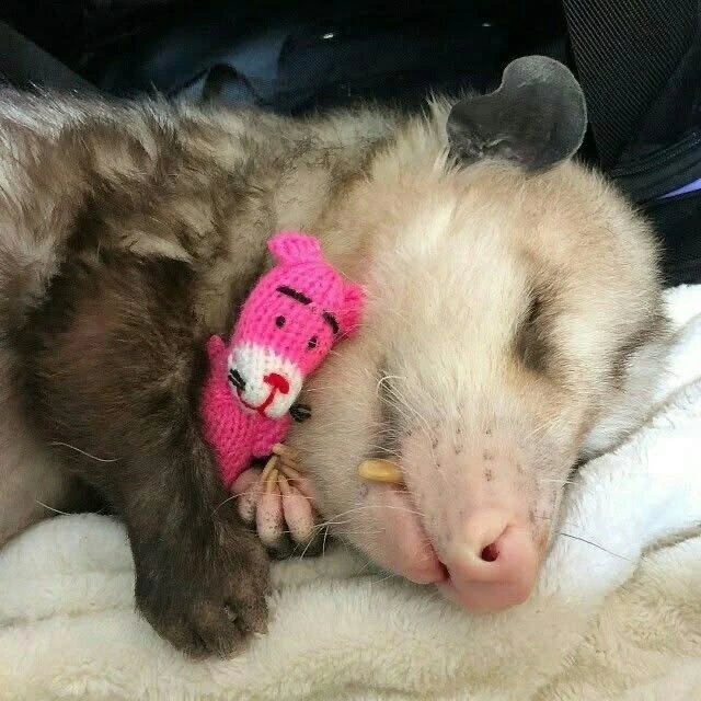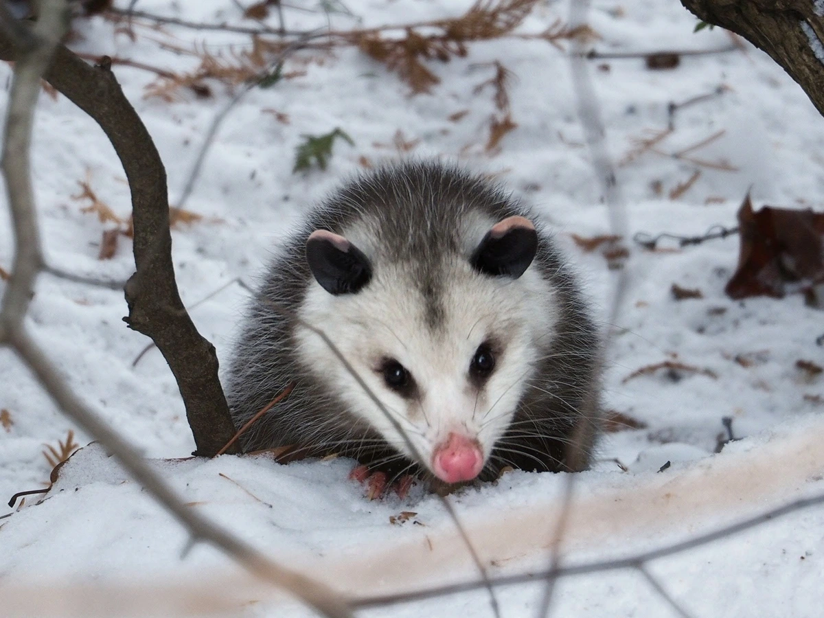 TranscriptionA 4-panel picture of an opossum. Panels 1, 3 and 4 have the close-up of the opossum’s face. Panel 2 has a picture of the possum yawning with a mouth wide open.
