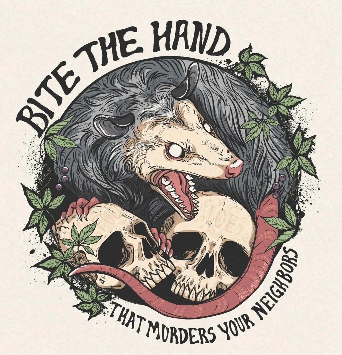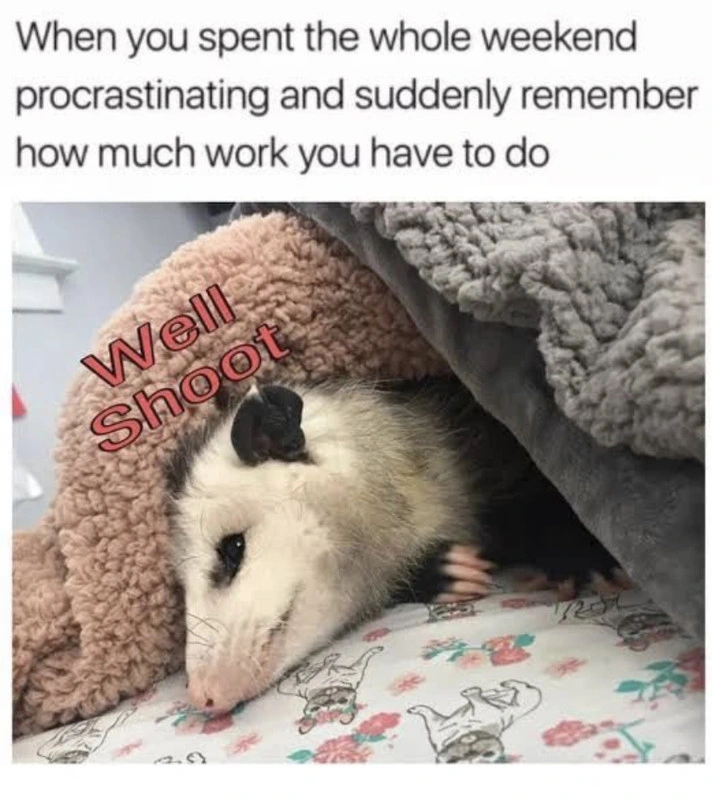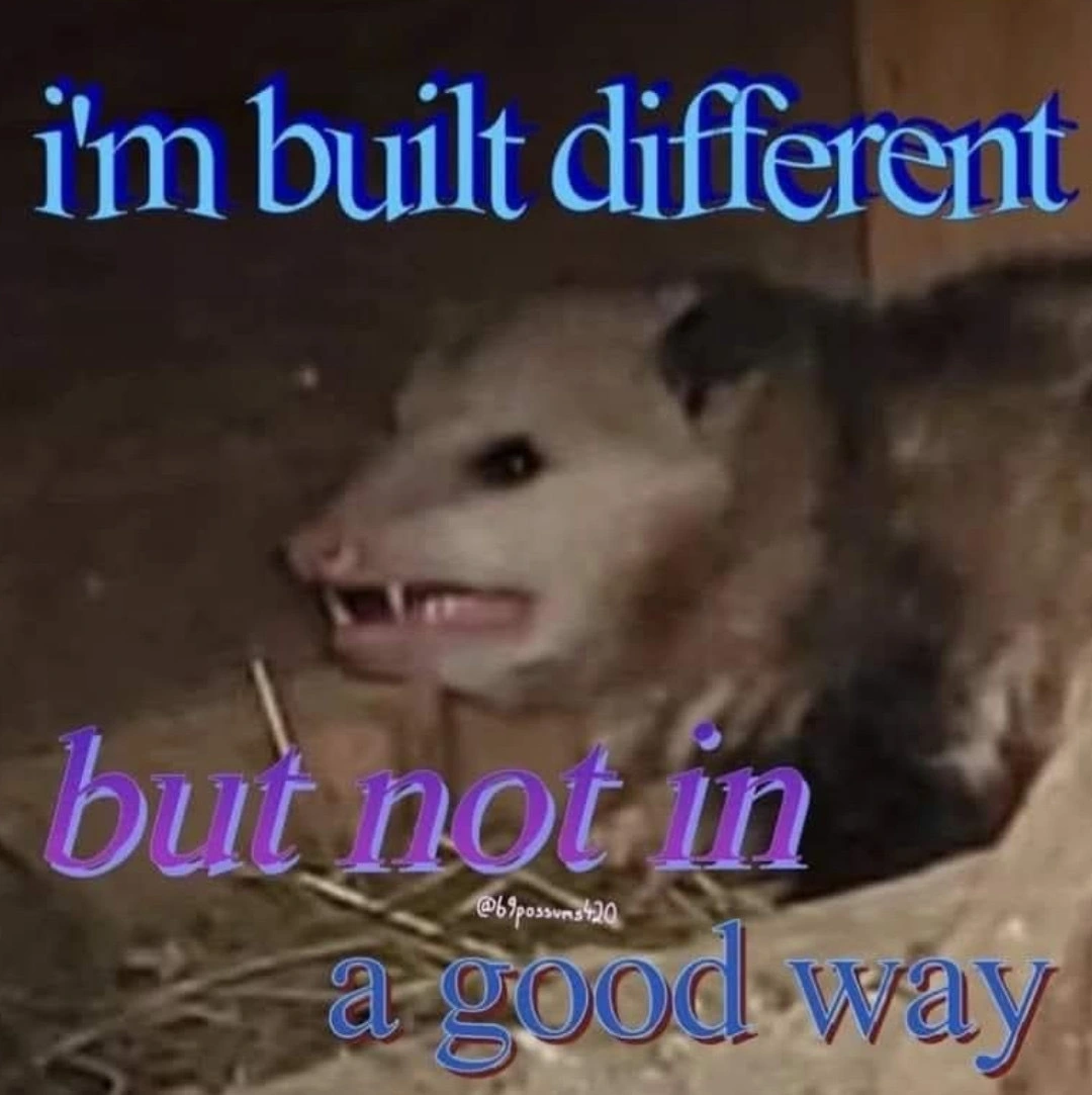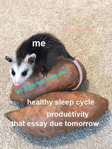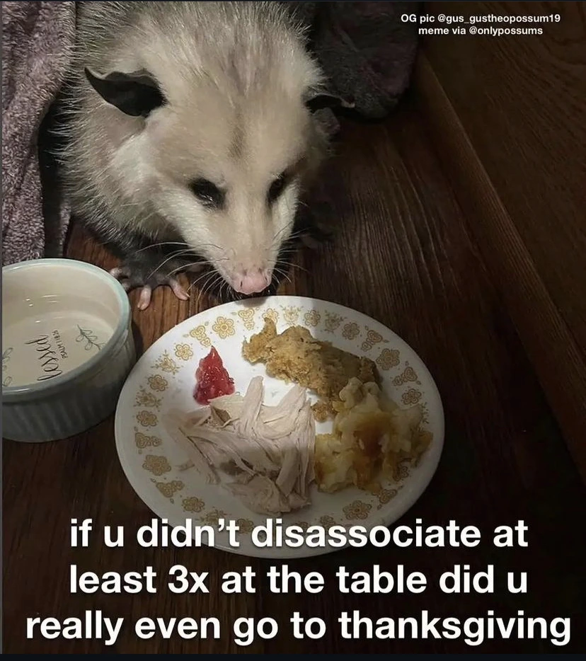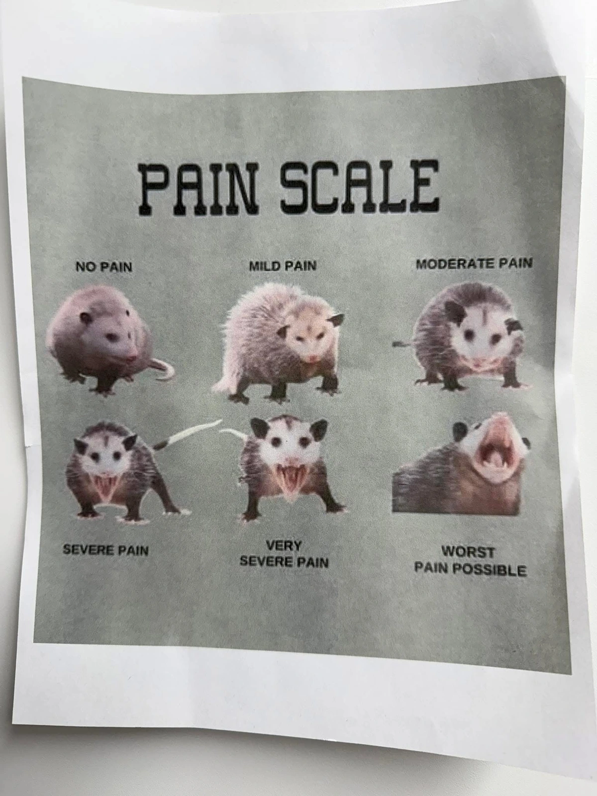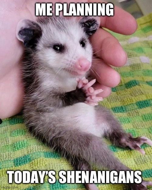 TranscriptionA 4-panel picture of an opossum. Panels 1, 3 and 4 have the close-up of the opossum’s face. Panel 2 has a picture of the possum yawning with a mouth wide open.