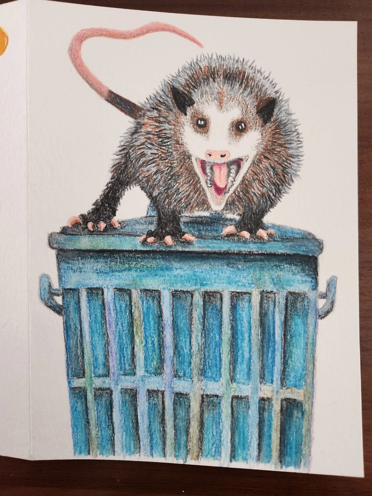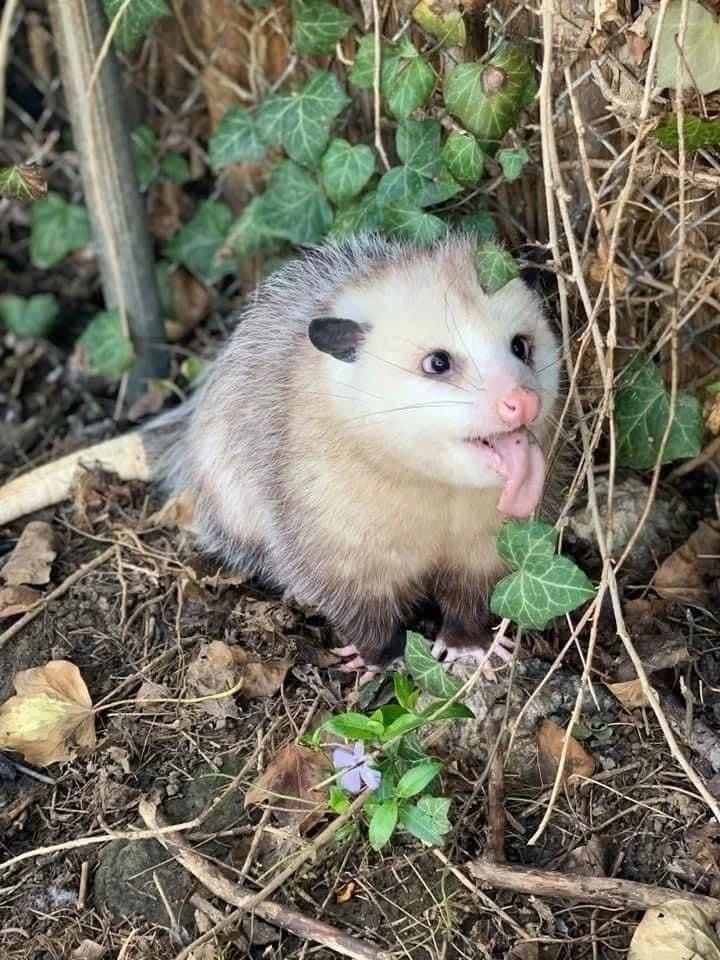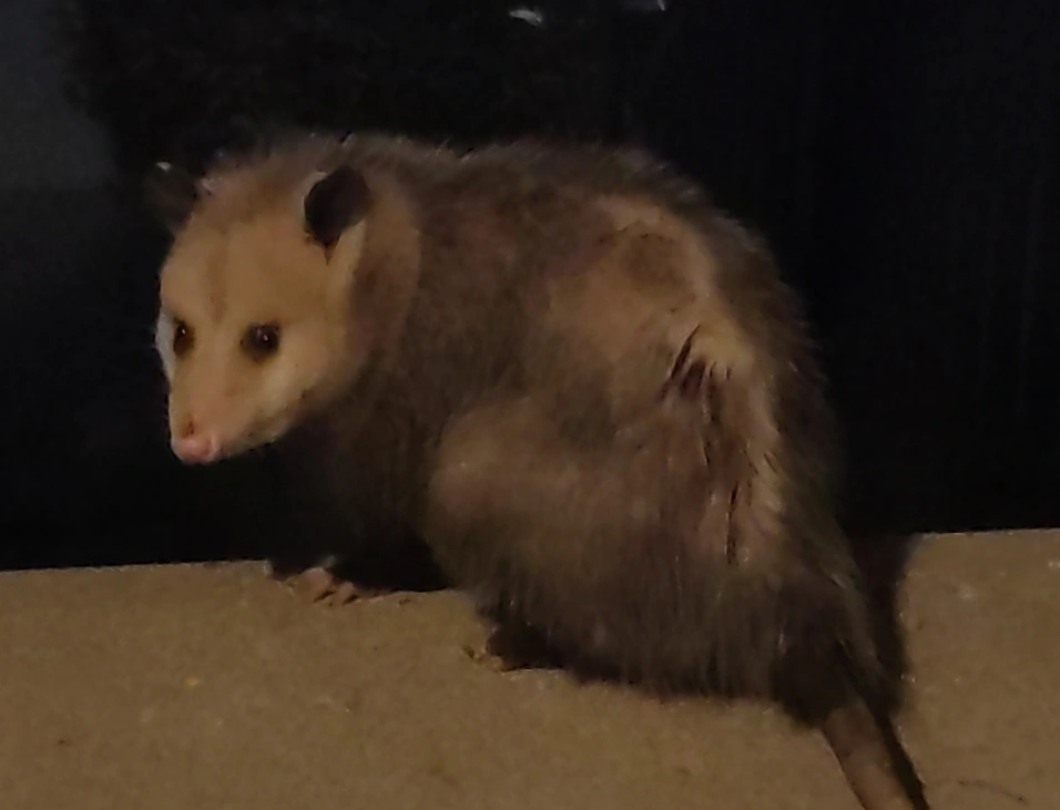 It’s my favorite North American marsupial, the Virginia opossum. I was watching the birds and squirrels munching and this young opossum bumbled on by. Many think of them as pests, but I think they’re adorable and useful.