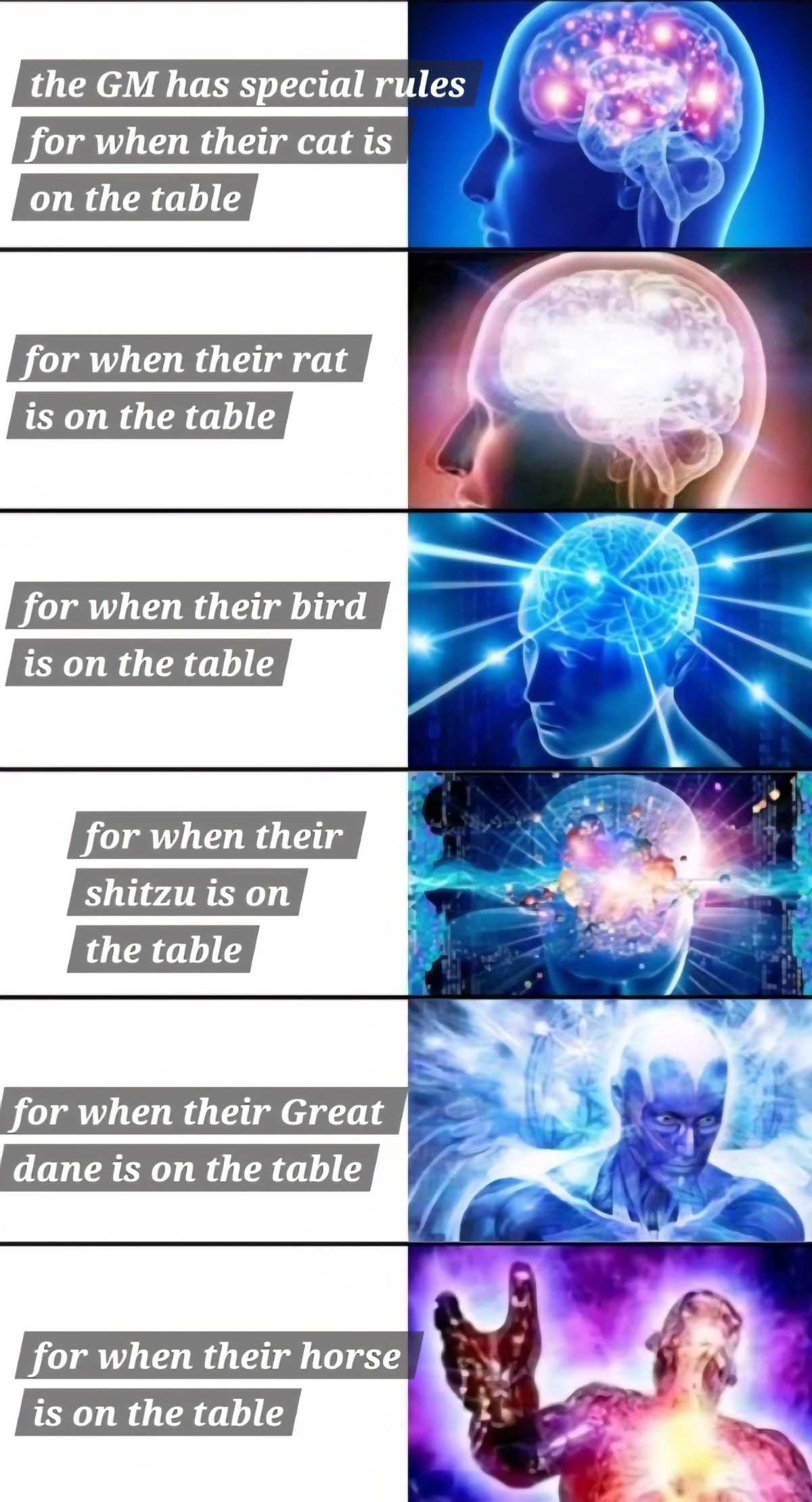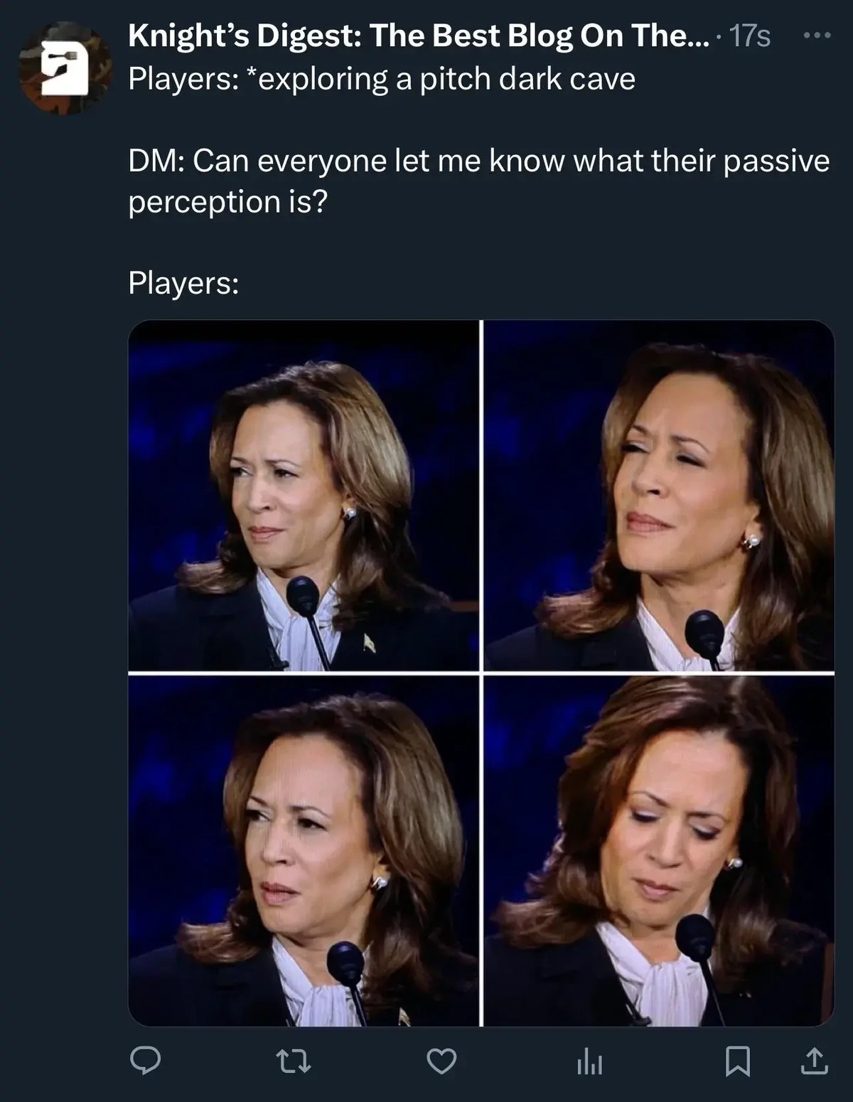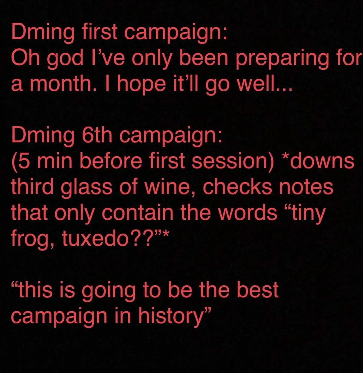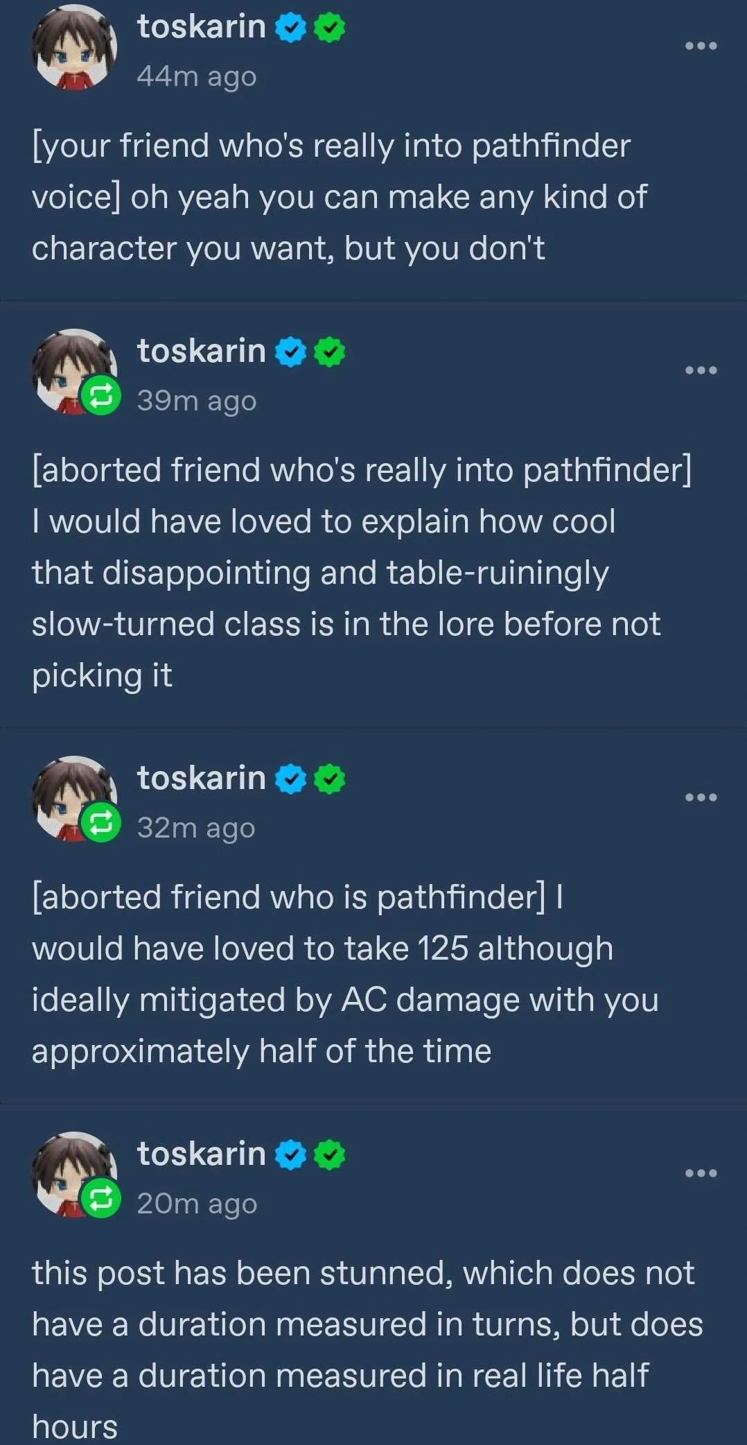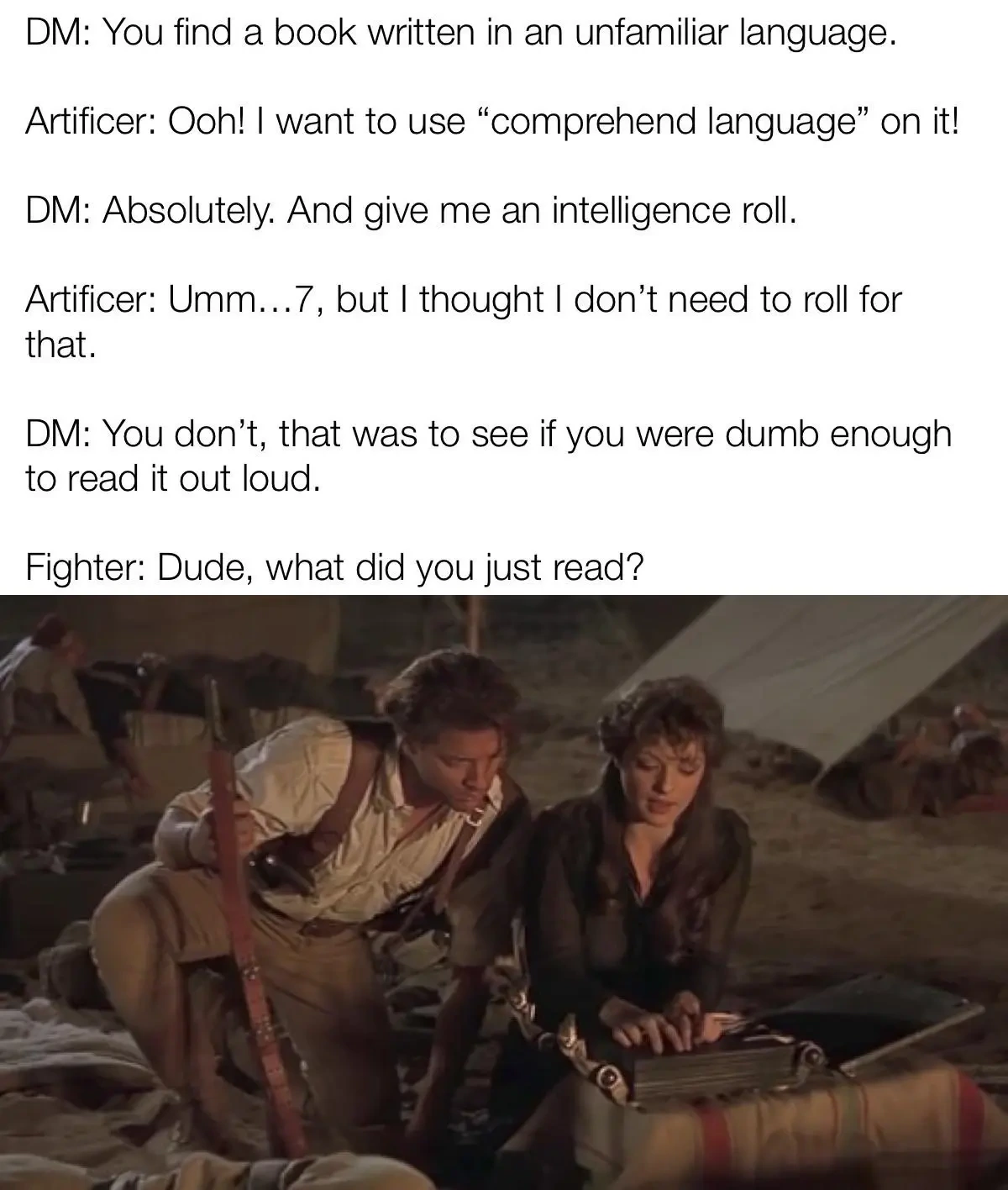Seriously. Every form of entertainment has baked-in political assumptions, and that definitely includes #ttrpg . You might choose not to examine them, but this is an active choice on your part, and you donβt get to pretend that your entertainment is βfree of politicsβ.