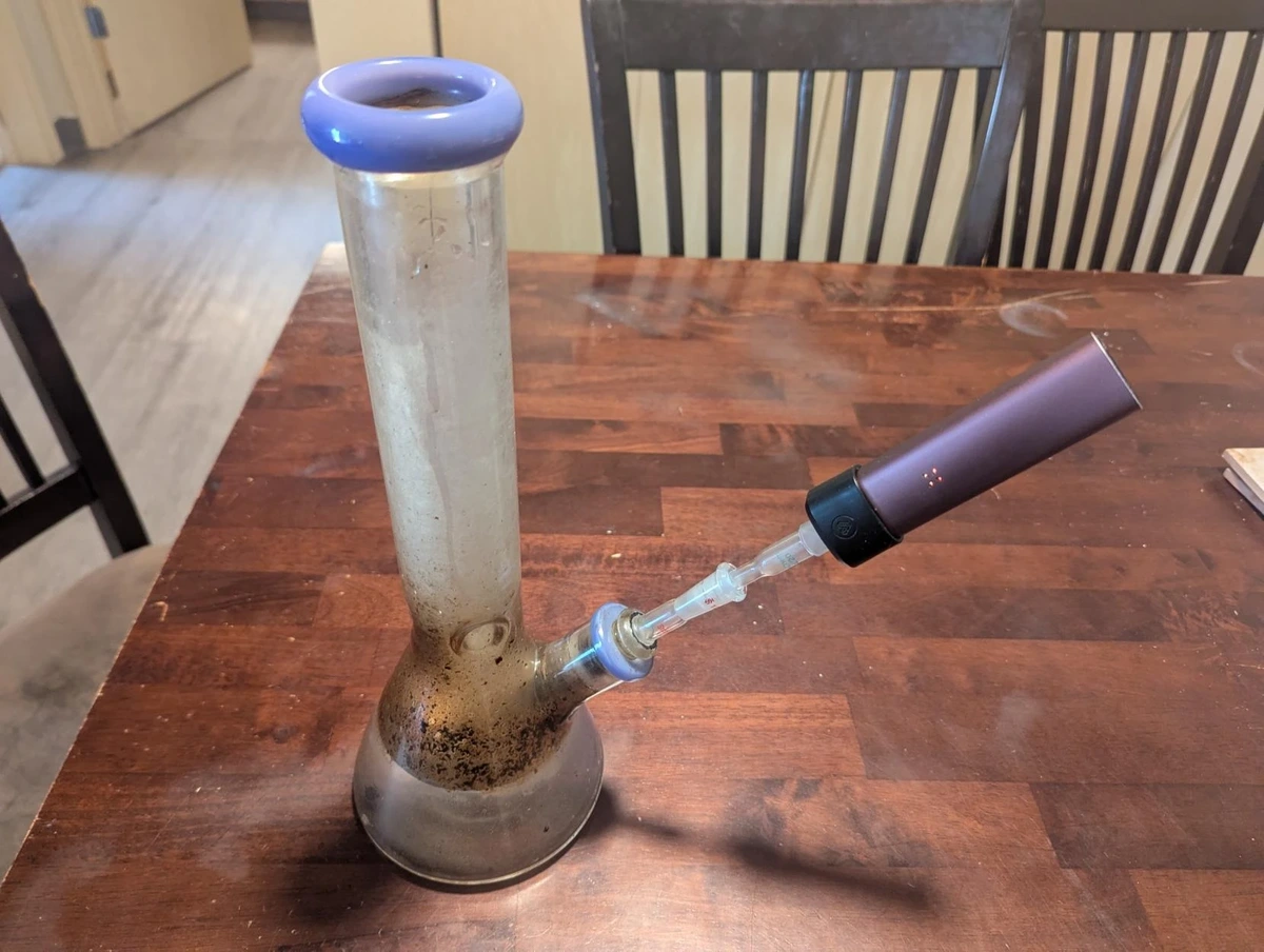 loved doing this with my roomieโs dry herb vape so much i decided to jury rig one up for mine with some chemistry lab equipment glass adapters!!!!!