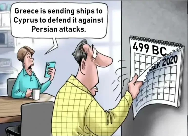Straight of Hormuz, with Buddha imposed, text: The realization that the lack of oil isn't causing your suffering, but the desire for oil itself, on your path to enlightenment.